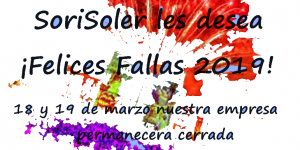 Sorisoler durante la festividad de Fallas permanecerá cerrada durante los días 18 y 19 de Marzo. Esperamos que disfruten de las fiestas de nuestra comunidad y disculpen las molestias.